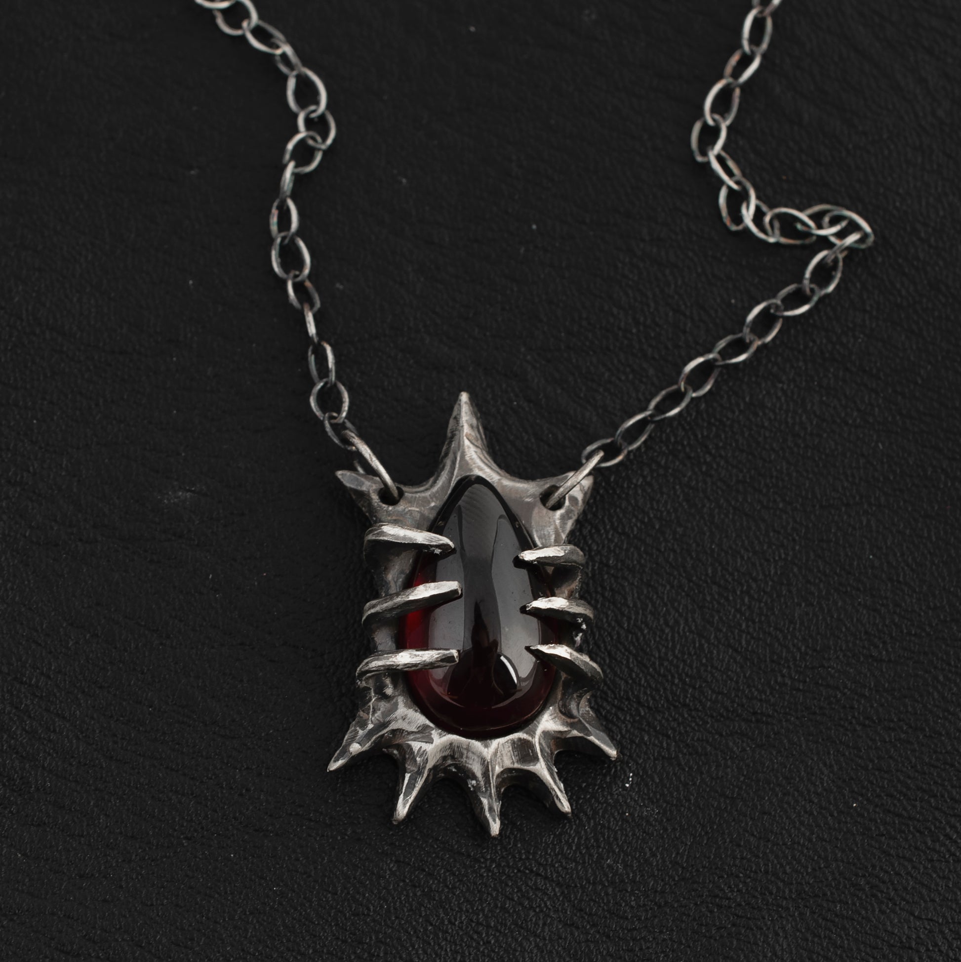 All of these necklaces are hand carved to fit each stone, cast into .925 sterling silver, and then hand finished by me. All of the pieces are lovingly soldered together to ensure the strength of the necklace over time.