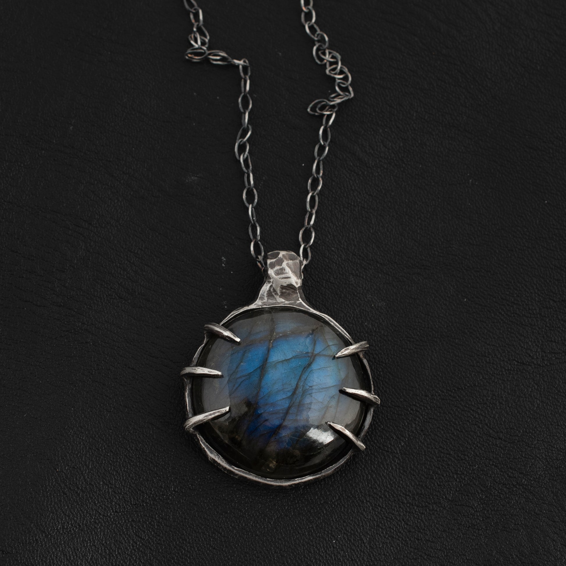 All of these necklaces are hand carved to fit each stone, cast into .925 sterling silver, and then hand finished by me. All of the pieces are lovingly soldered together to ensure the strength of the necklace over time.
