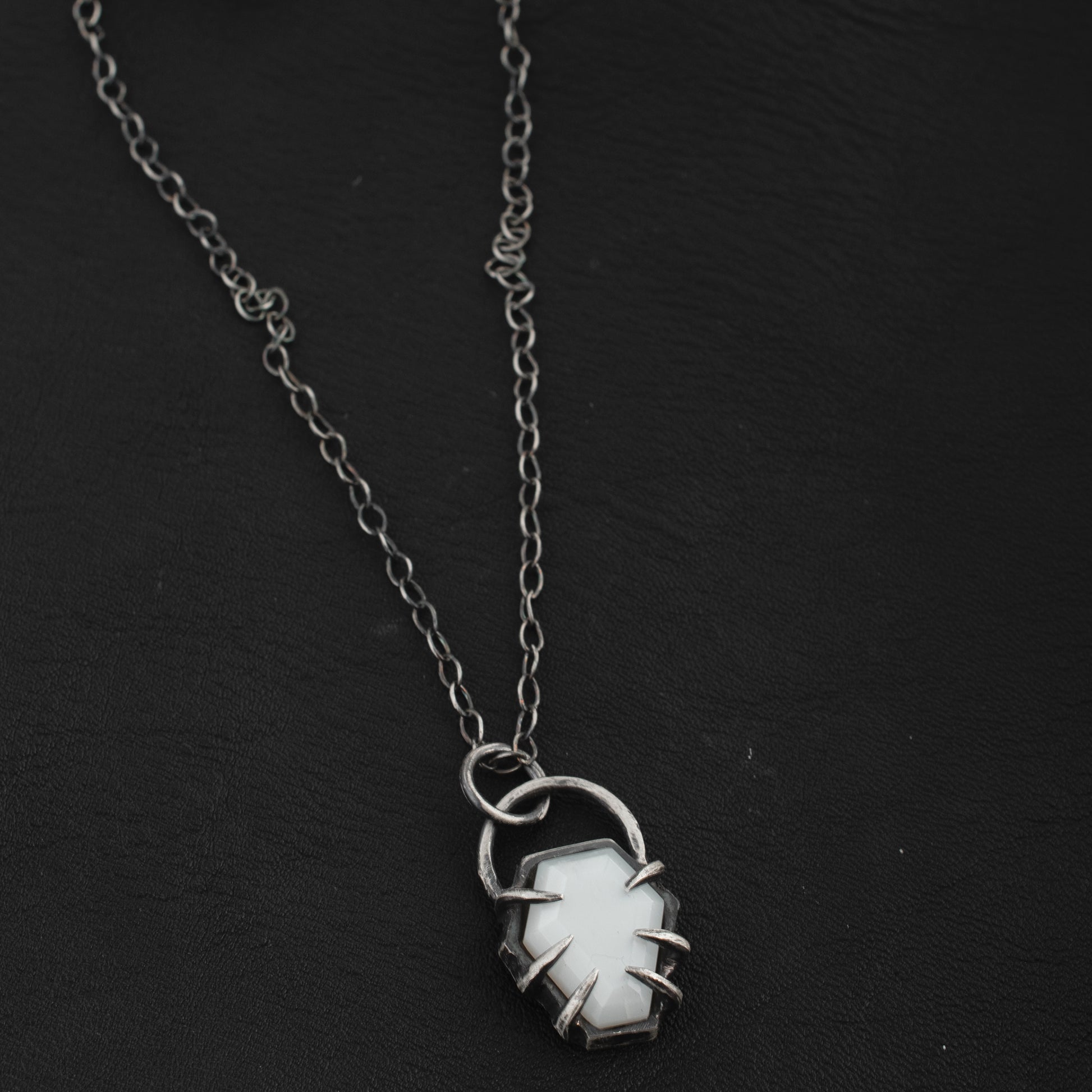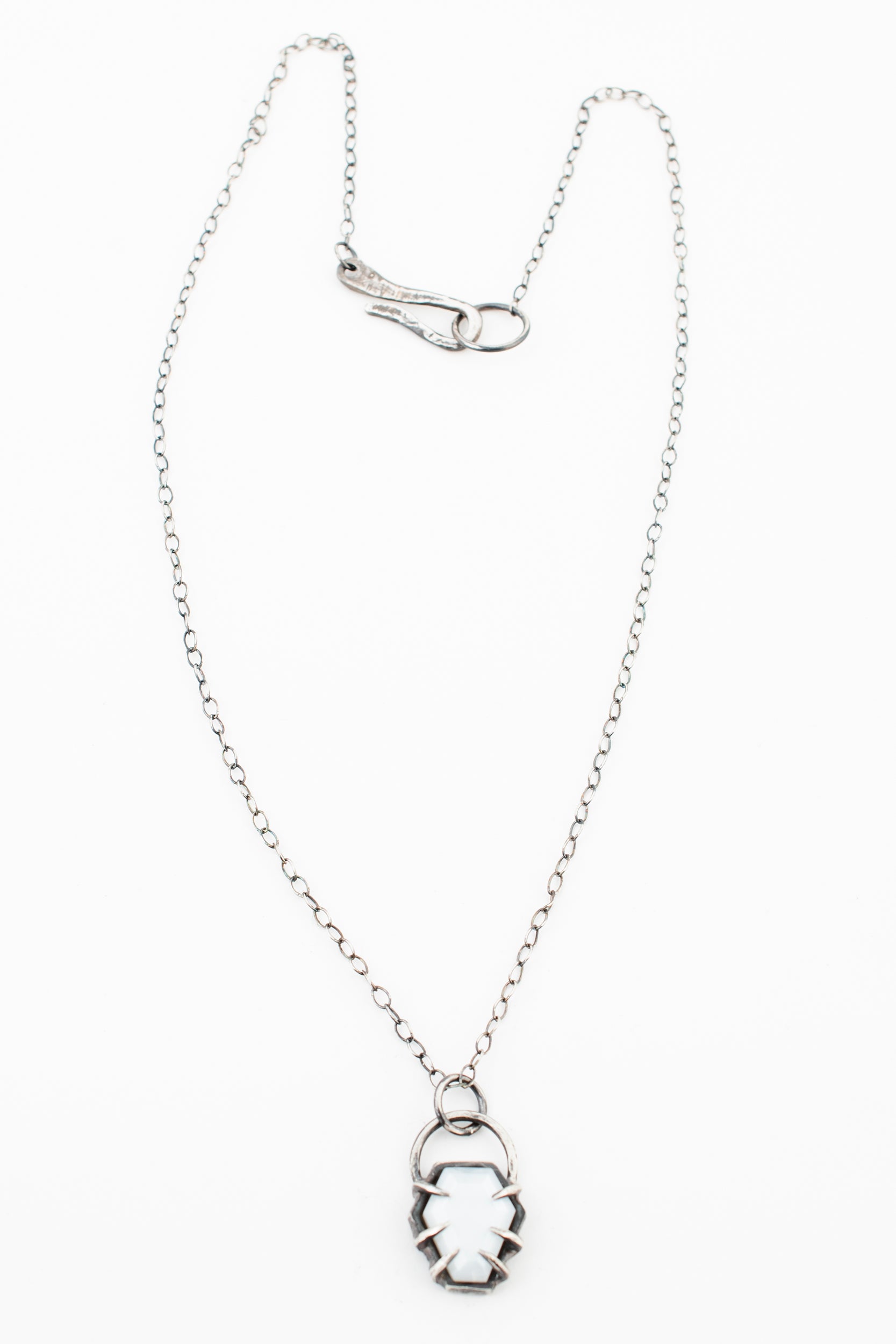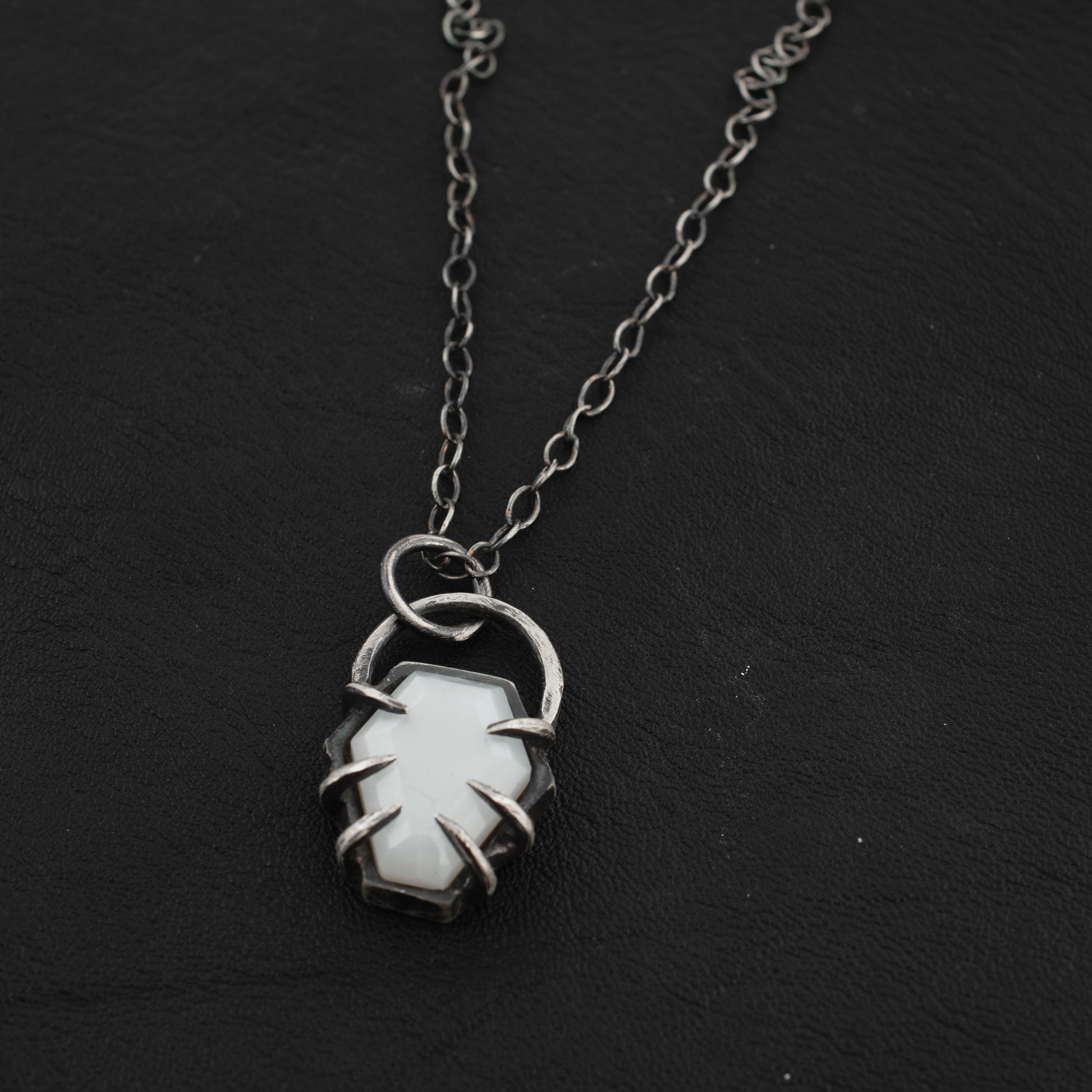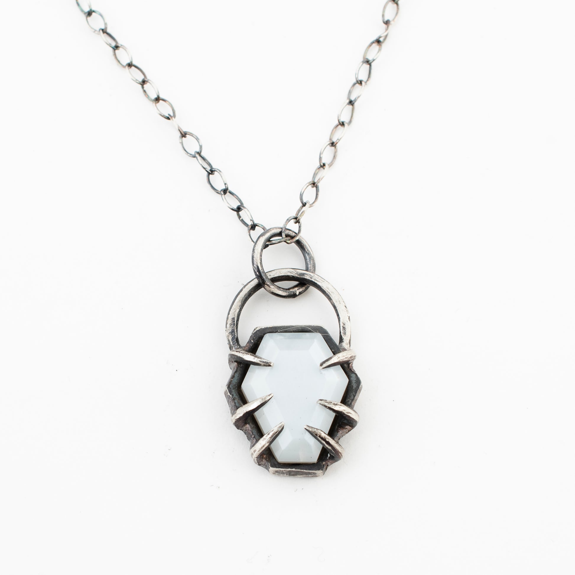 All of these necklaces are hand carved to fit each stone, cast into .925 sterling silver, and then hand finished by me. All of the pieces are lovingly soldered together to ensure the strength of the necklace over time.