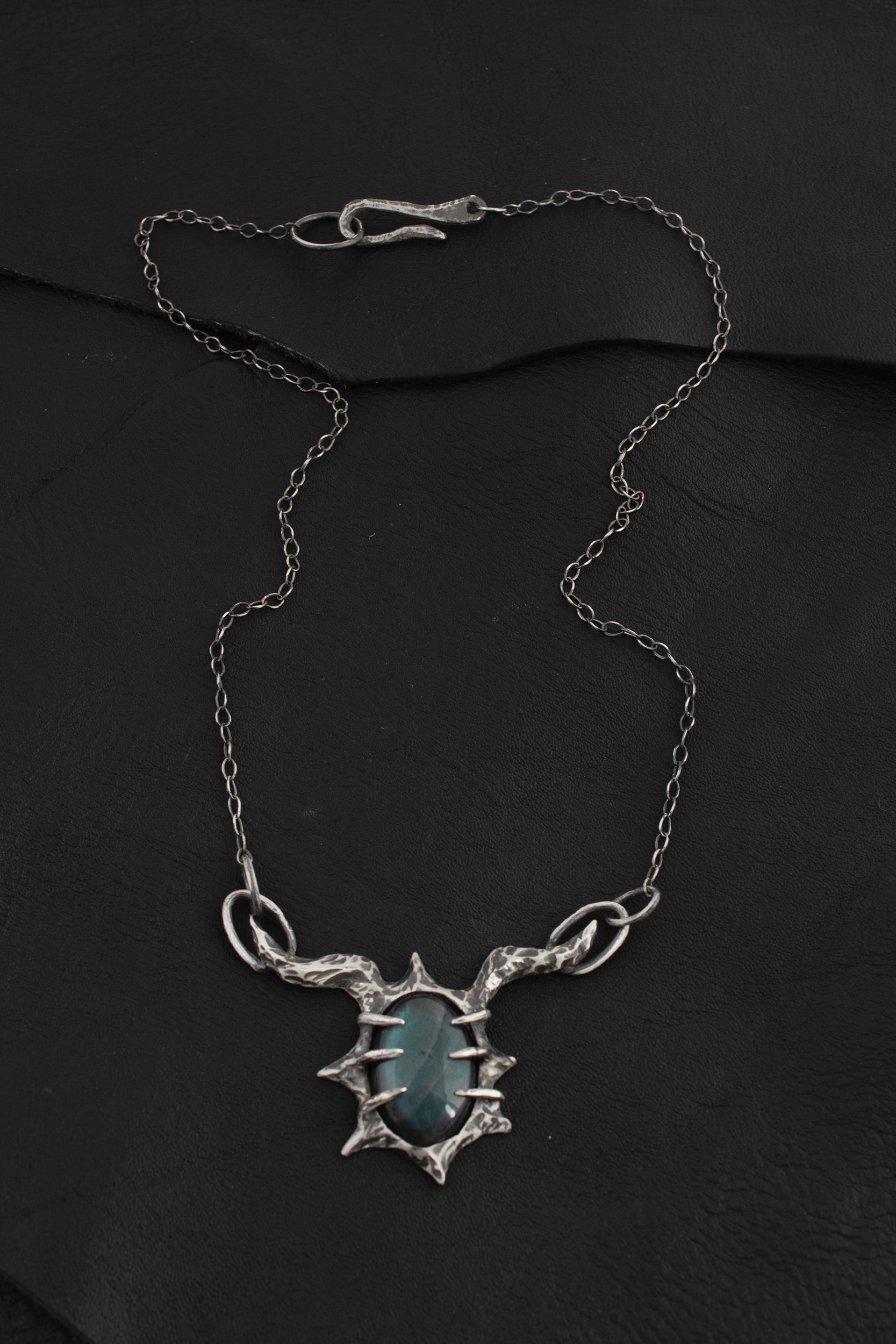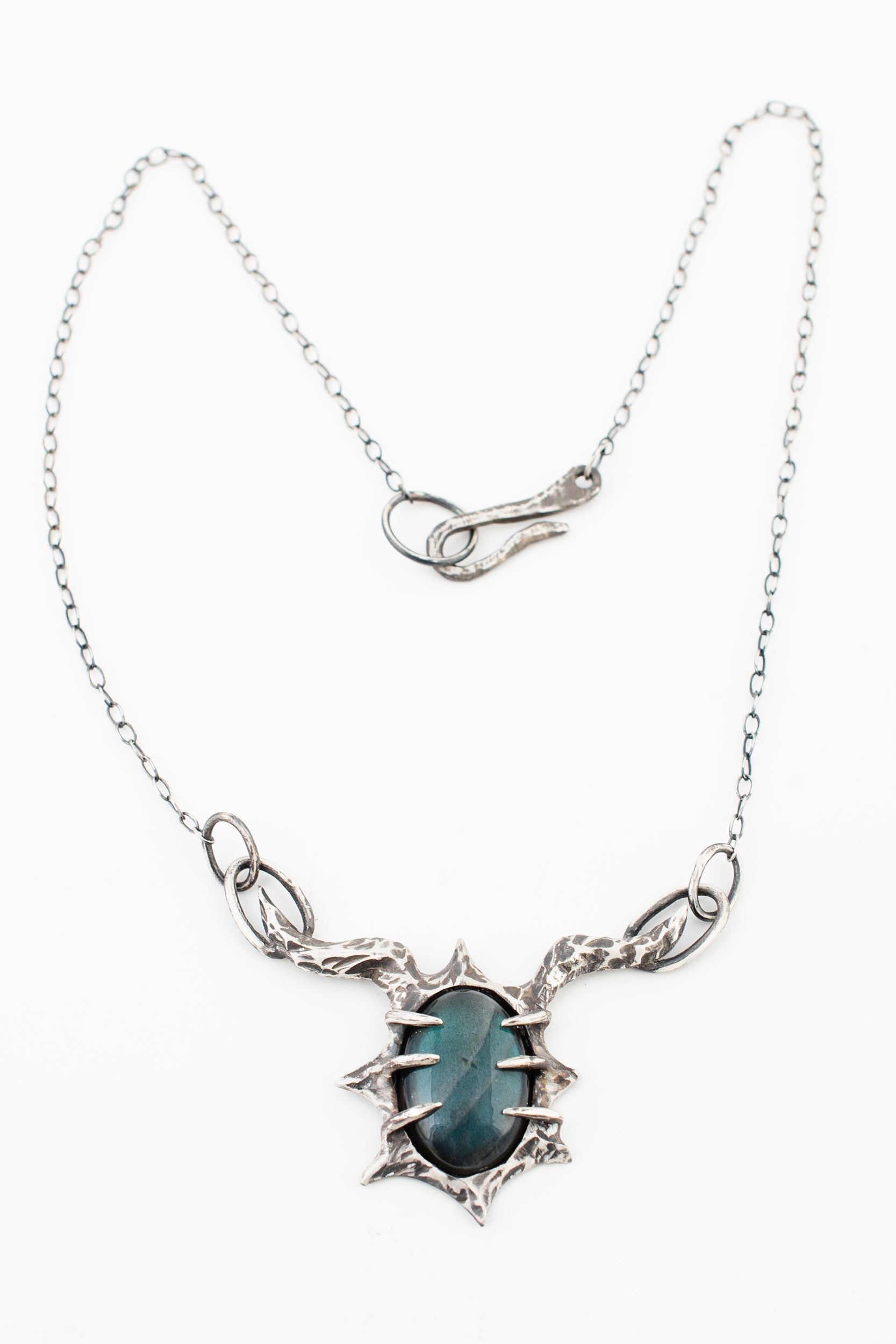 All of these necklaces are hand carved to fit each stone, cast into .925 sterling silver, and then hand finished by me. All of the pieces are lovingly soldered together to ensure the strength of the necklace over time.