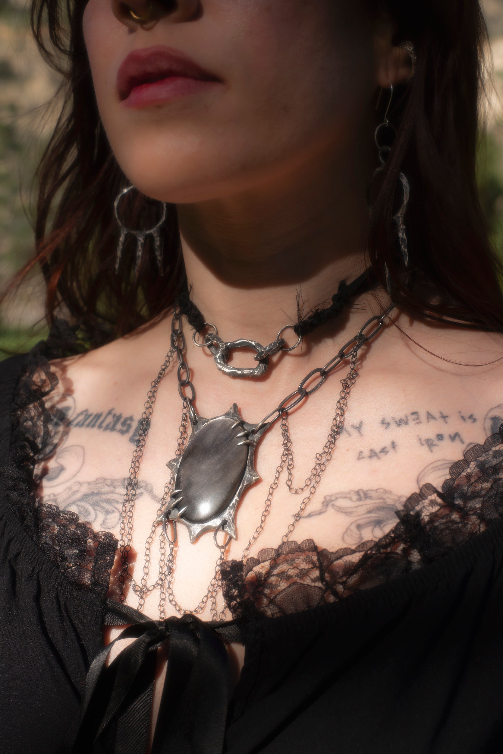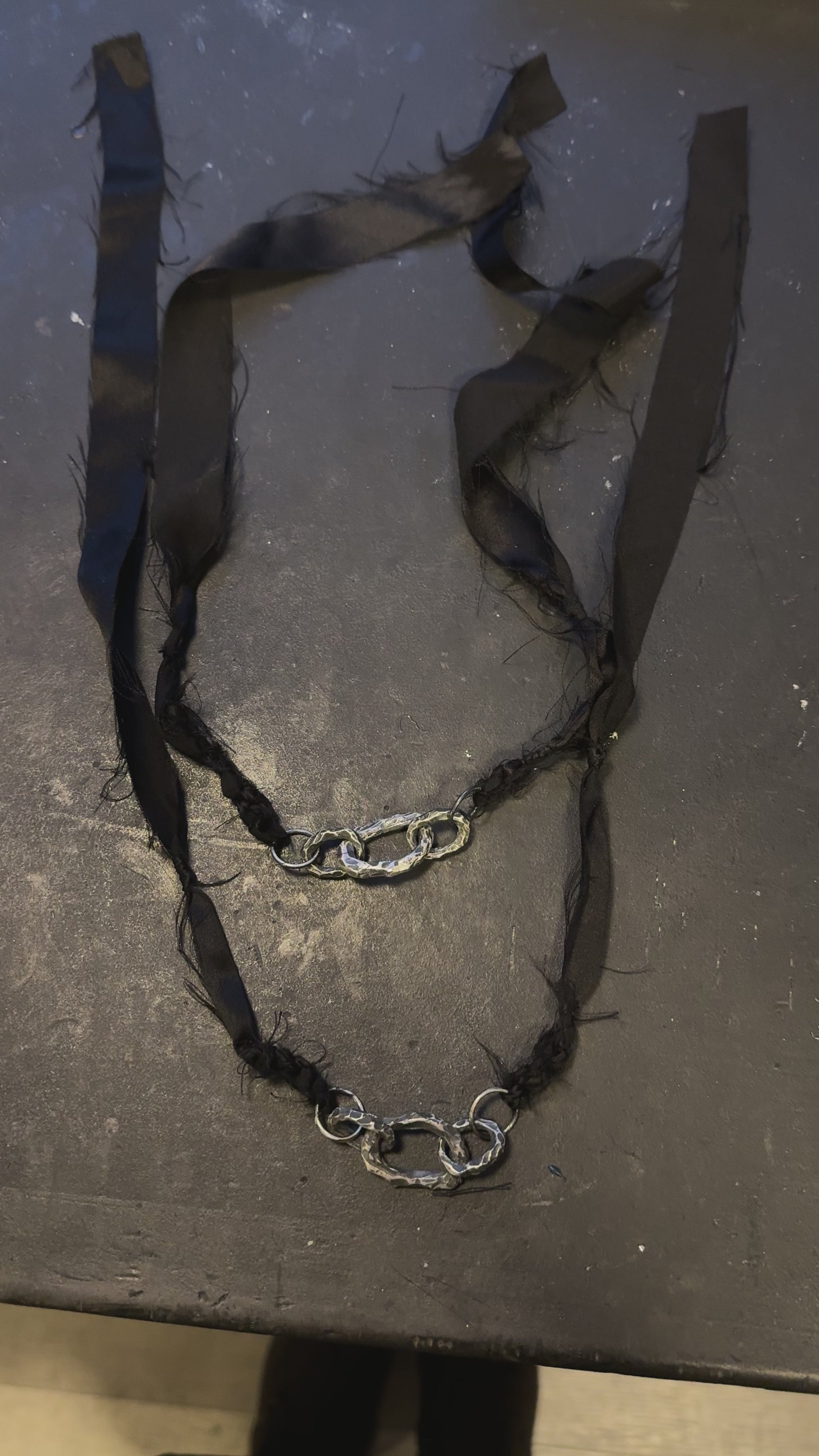 Sterling silver and raw silk