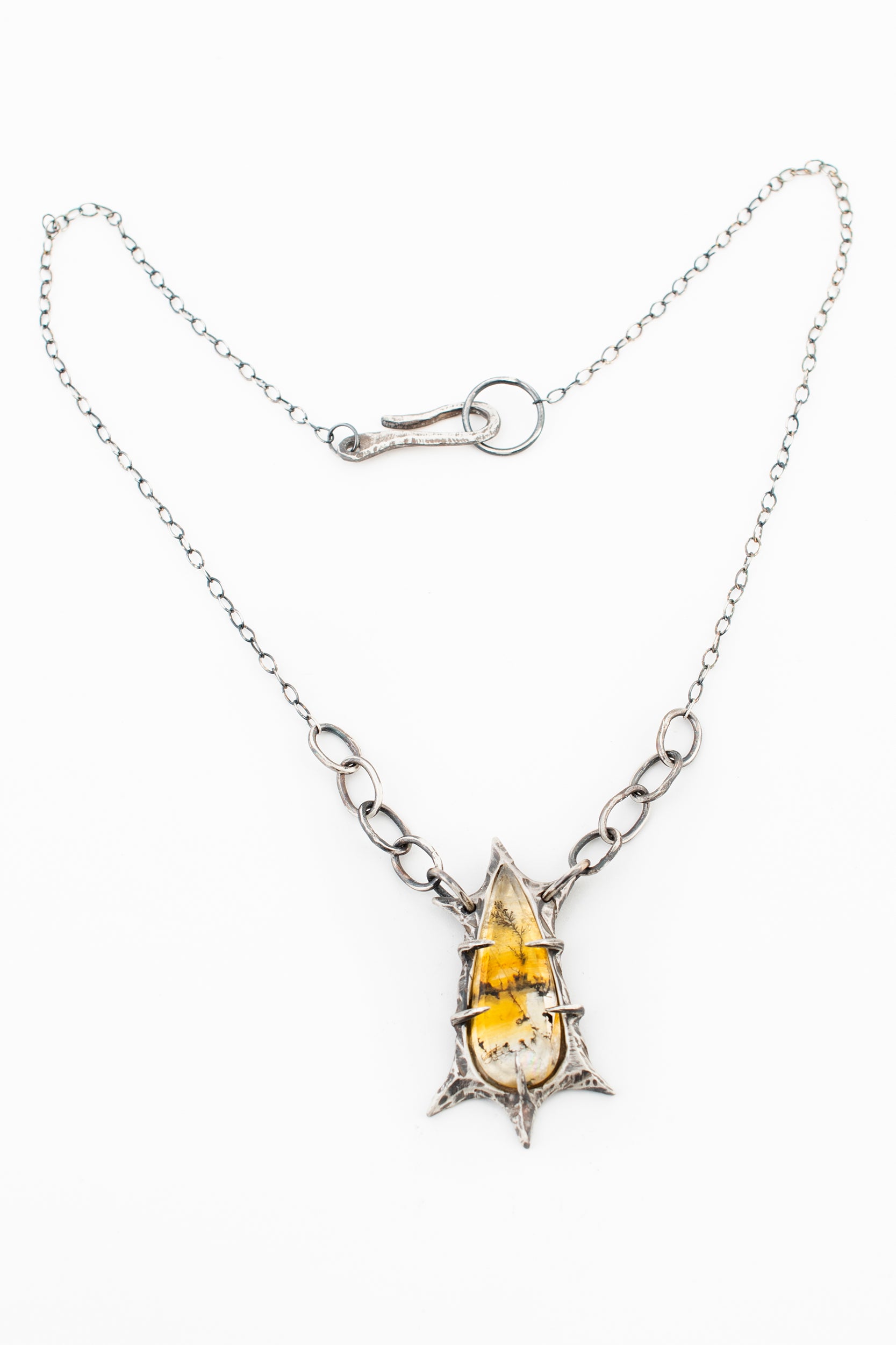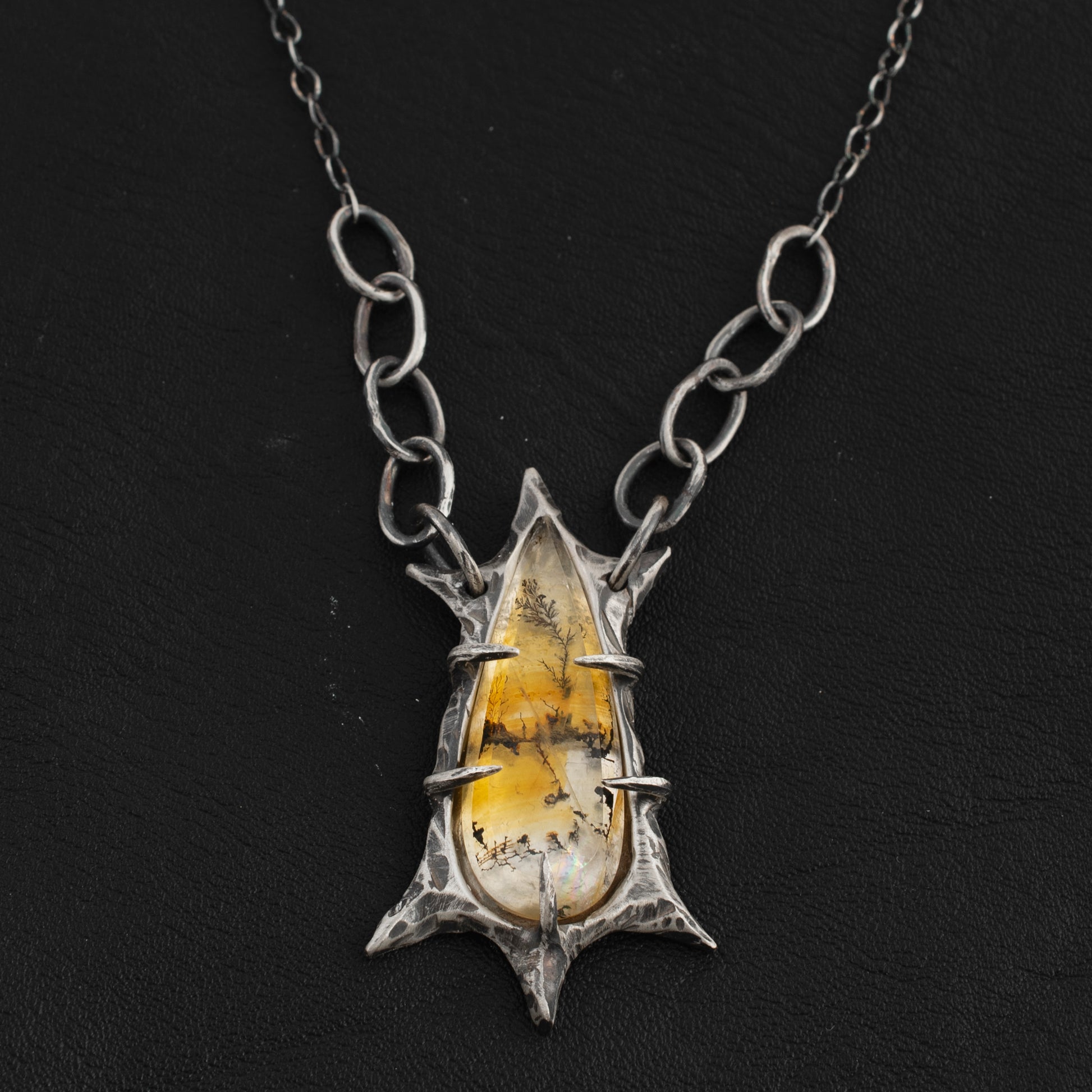 All of these necklaces are hand carved to fit each stone, cast into .925 sterling silver, and then hand finished by me. All of the pieces are lovingly soldered together to ensure the strength of the necklace over time.